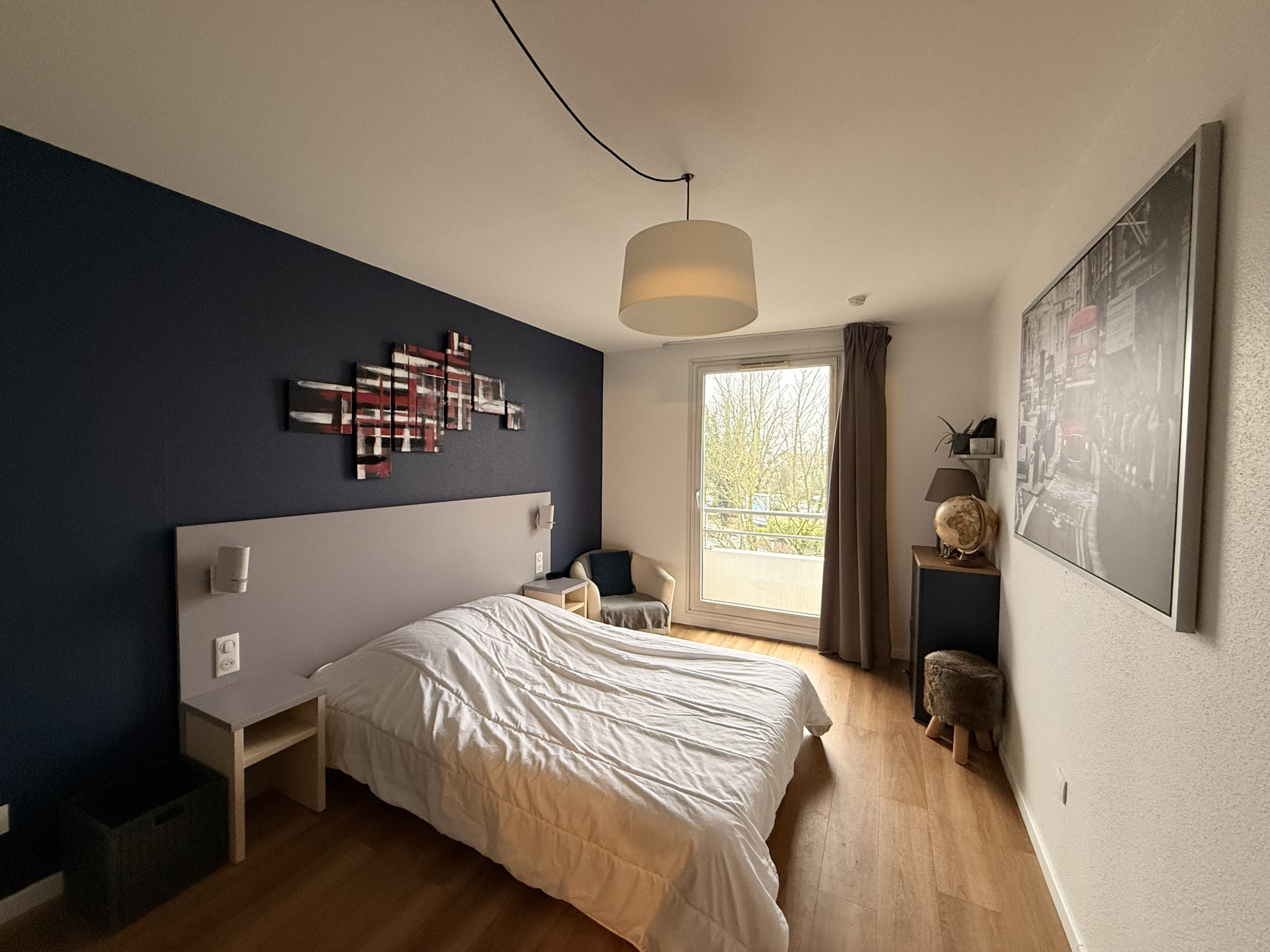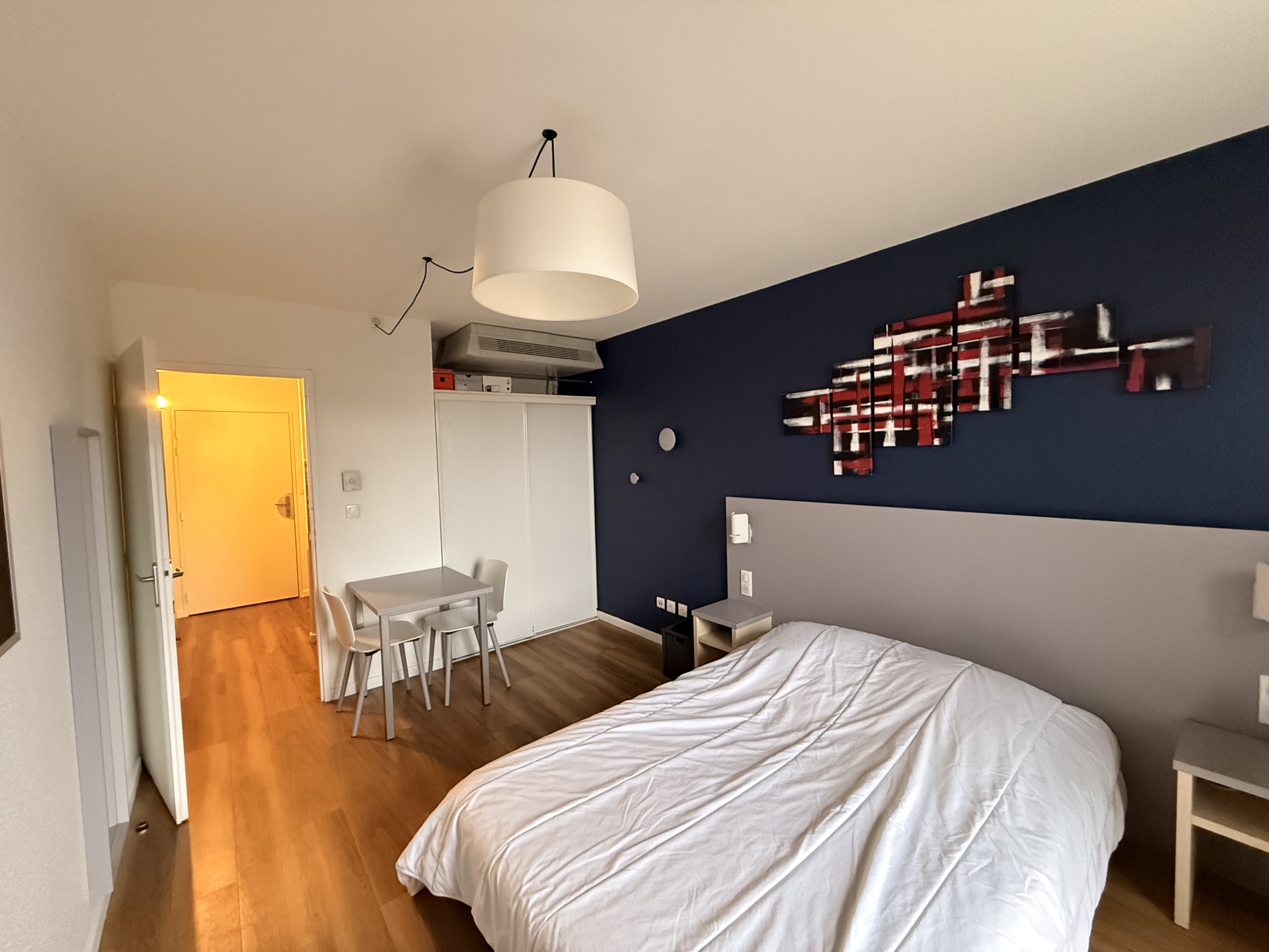Une grande pièce de vie lumineuse avec placard intégré et climatisation,