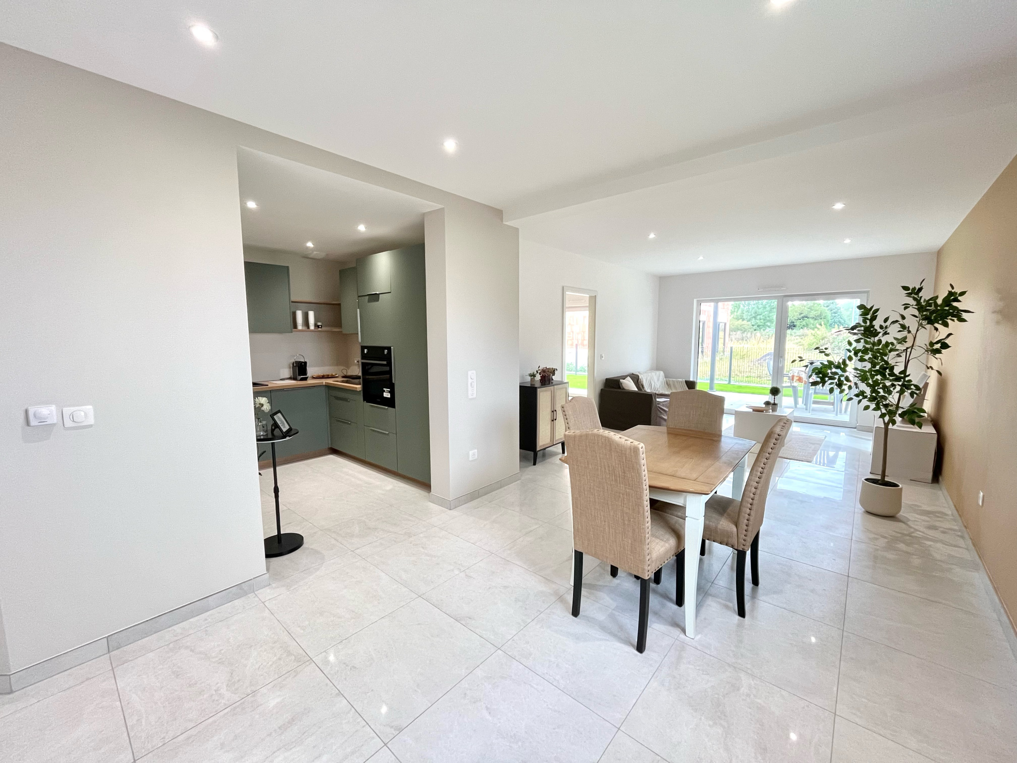 Chaque maison offre une surface habitable d'environ 100 m², répartie intelligemment sur deux niveaux. Dès l’entrée, vous serez accueillis par des espaces de vie spacieux et chaleureux, conçus pour maximiser la lumière naturelle. Le séjour ouvert sur une belle terrasse privative, prolonge l’espace vers l’extérieur.