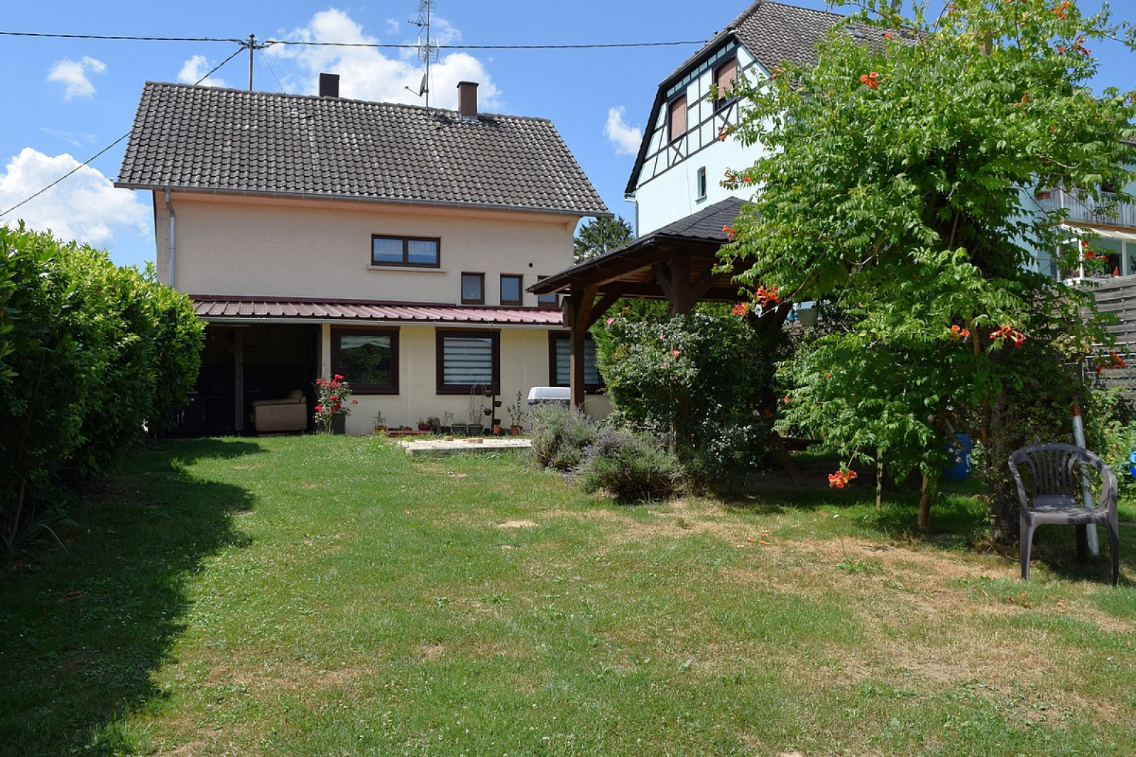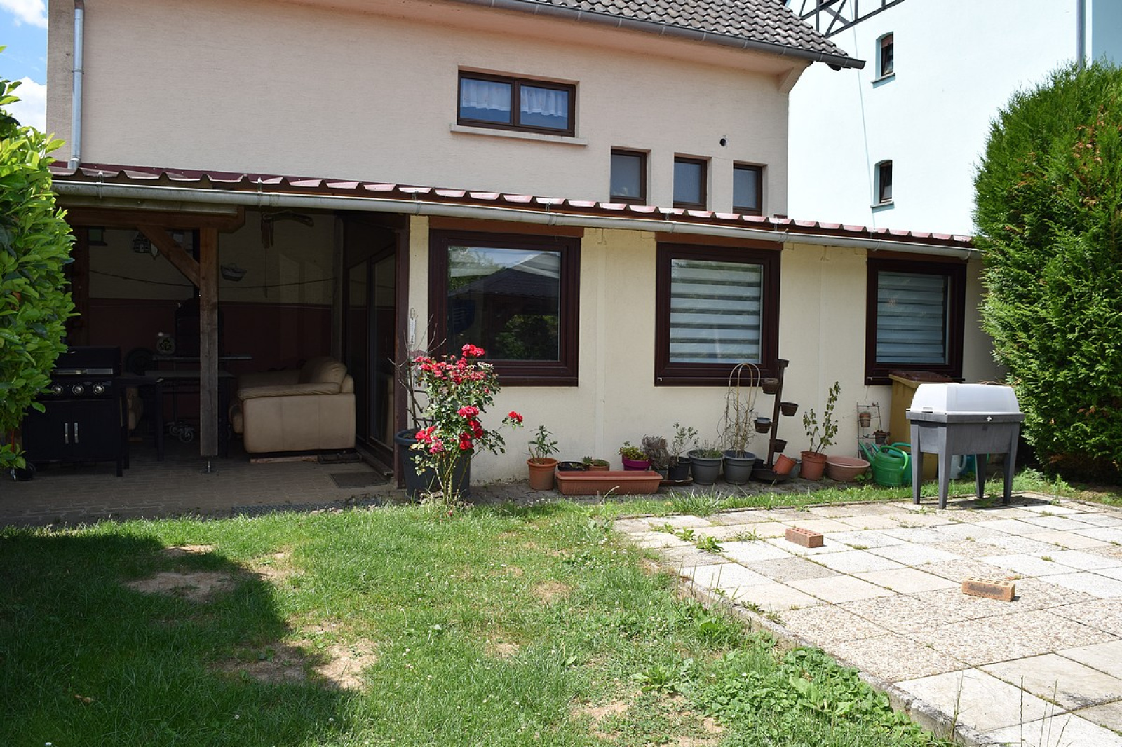 Au Rez-de Chaussée : - 1 cuisine équipée - 1 salon/ séjour - 1 salle de bain avec baignoire/ douche et meuble vasque. - 1 w.c - 1 véranda A l’étage : - 1 pallier - 2 grandes chambres - 1 dressing - 1 w .c Une 3ème chambre est facilement concevable en modifiant la répartition des pièces du 2ème étage. Le sous-sol est complet avec cave, garage, atelier et chaufferie. Le chauffage est au fioul avec possibilité d’y installer un poêle à bois/ à pellets (second conduit existant). La maison possède des panneaux photovoltaïques qui permettent à la revente, une rentabilité d’env. 900 à 1000,-€ par an. A l’extérieur vous découvrirez un garage supplémentaire, un carport ainsi que 2 terrasses sans vis-à vis, le tout sur un magnifique terrain joliment arboré, où l’on peut encore se projeter avec une piscine pour de belles journée ensoleillées ou simplement avec un potager, des animaux… Le terrainde 21,60 ares permet une seconde construction, il peut donc convenir à deux familles qui souhaitent se réunir et bénéficier d’une propriété à prix attractif, mais il offre aussi la possibilité d’y construire sa maison tout en louant la 1ére et ainsi bénéficier d’un rendement locatif. Anzeige auf unserer Website ins Deutsche übersetzt. Pour plus d'informations ou une visite, n'hésitez pas à me contacter : Céline NOBLANC - Tel : 06 23 95 72 58 - Ich spreche deutsch - Mail : c.noblanc@tmg-immo.com Agent commerciale indépendante N° RSAC 819 146 689 Montant estimé des dépenses annuelles d'énergie pour un usage standard : entre 2900 € et 3970 € sur les années 2021, 2022 et 2023 (abonnements compris). Les informations sur les risques auxquels ce bien est exposé sont disponibles sur le site Géorisques : https://www.georisques.gouv.fr/