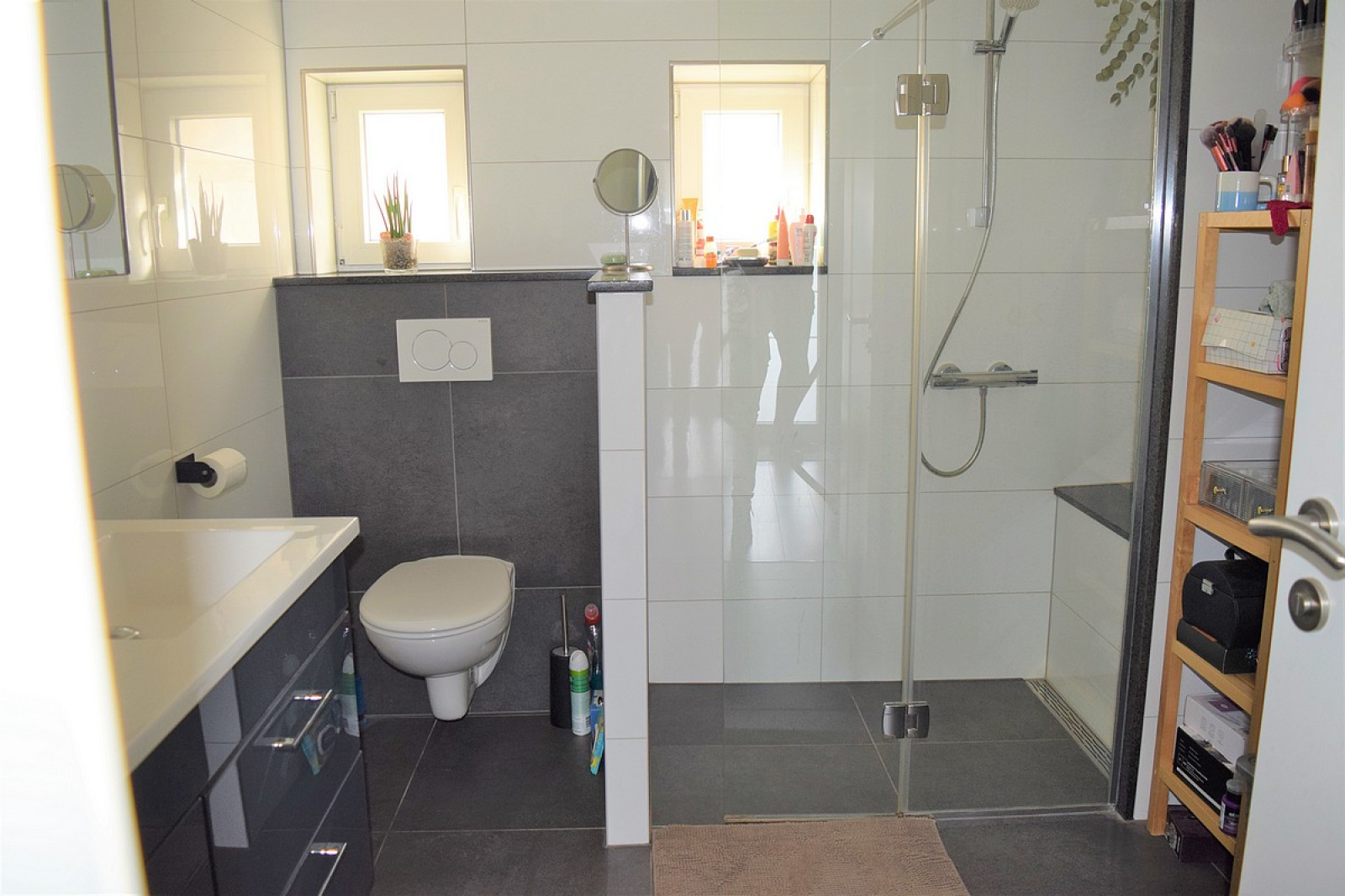 - 1 très belle salle d’eau avec douche à l’italienne meuble double vasque, sèche serviette et w.c.