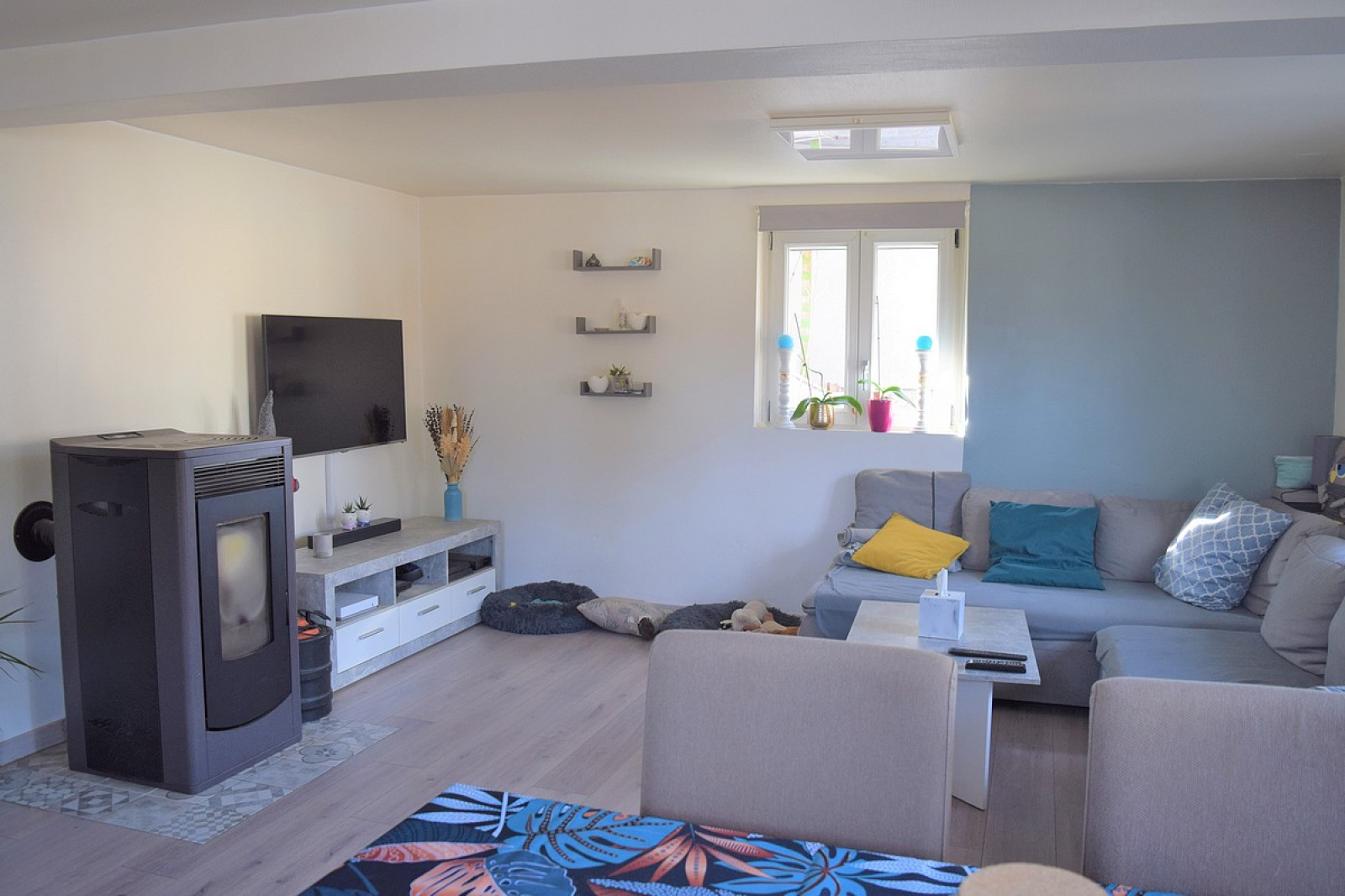 - 1 salon/ séjour pourvu d’un poêle à pellets.