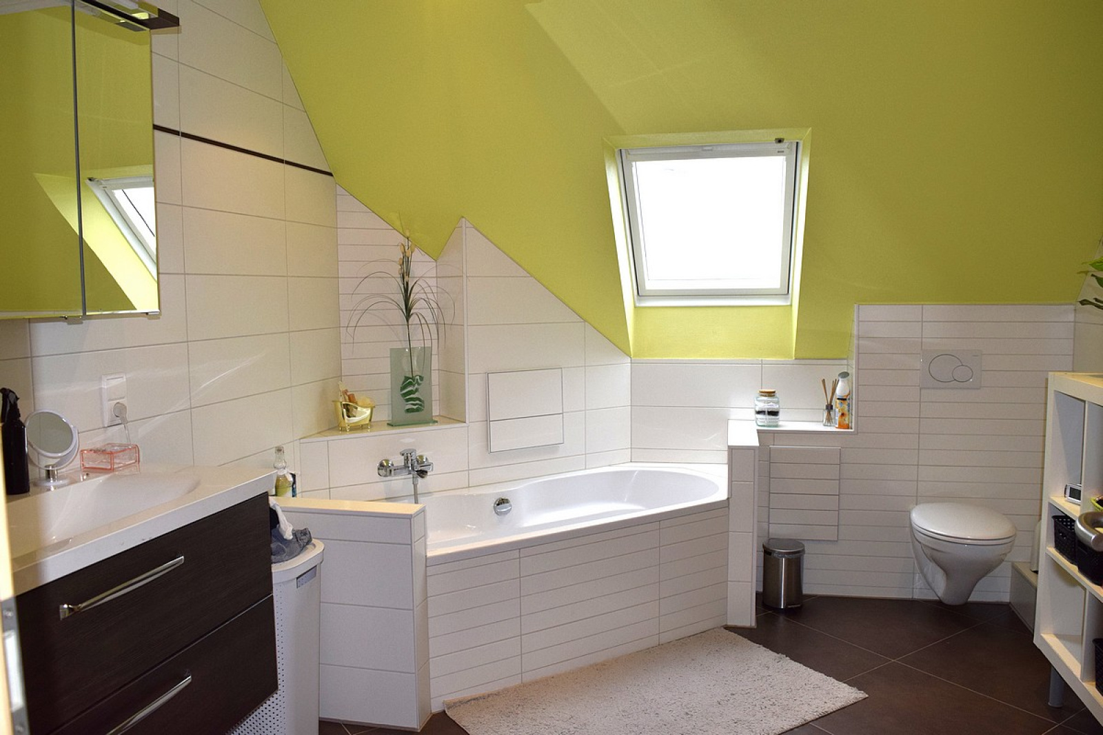 - 1 salle de bain avec baignoire, meuble vasque, douche et W.C.