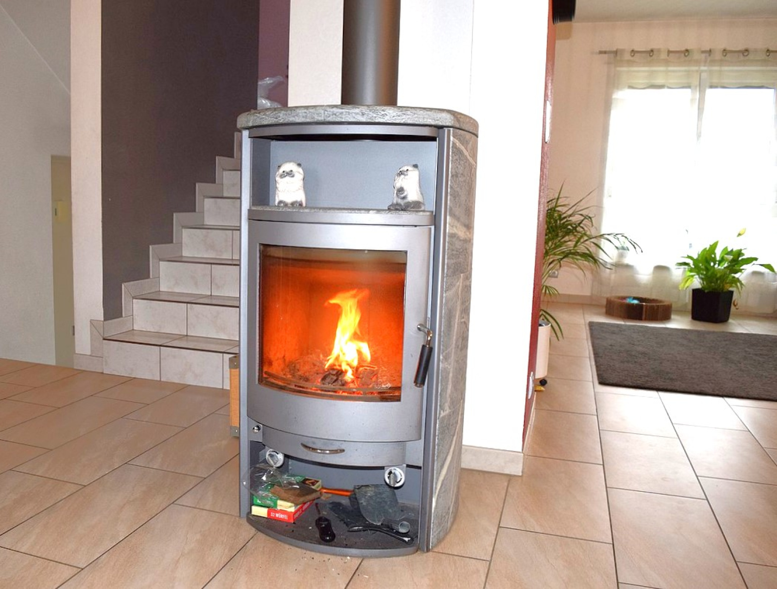 - 1 vaste salon/ séjour pourvu d’un poêle à bois.