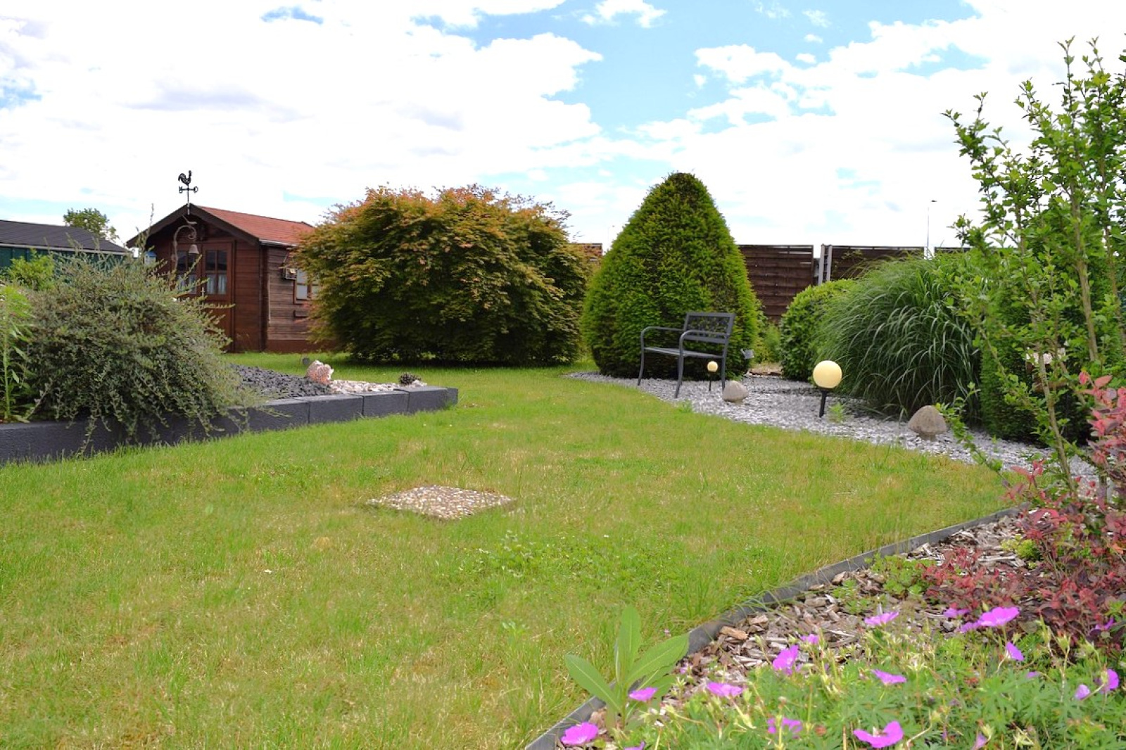A l’extérieur vous apprécierez le jardin un véritable havre de paix. Très bien entretenu, il possède une seconde terrasse mais aussi un cabanon pour tout l’outillage de jardin.