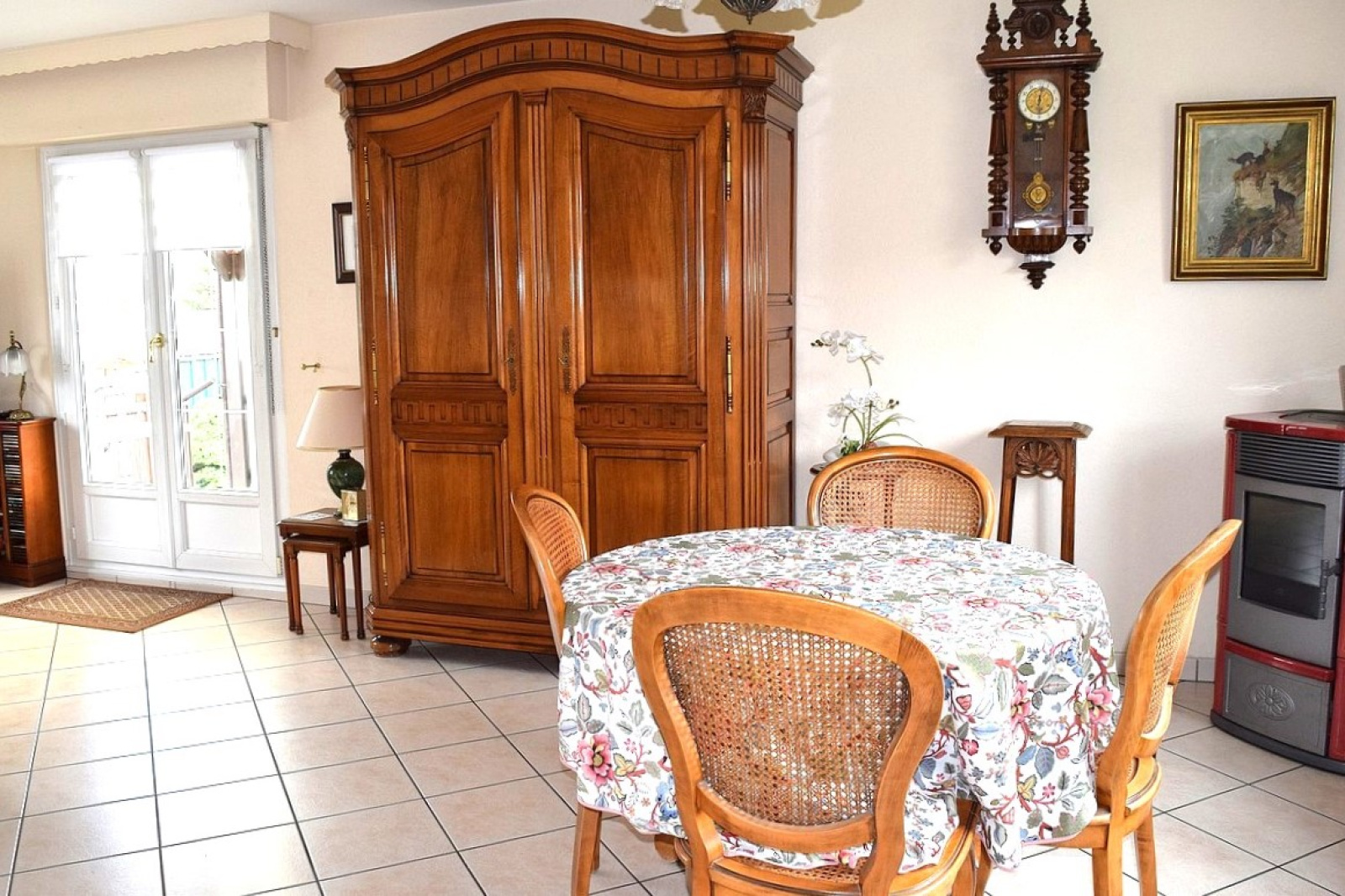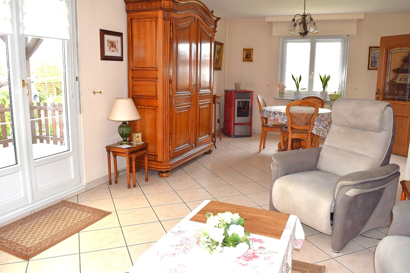 - 1 salon séjour pourvu d’un poêle avec accès à la terrasse