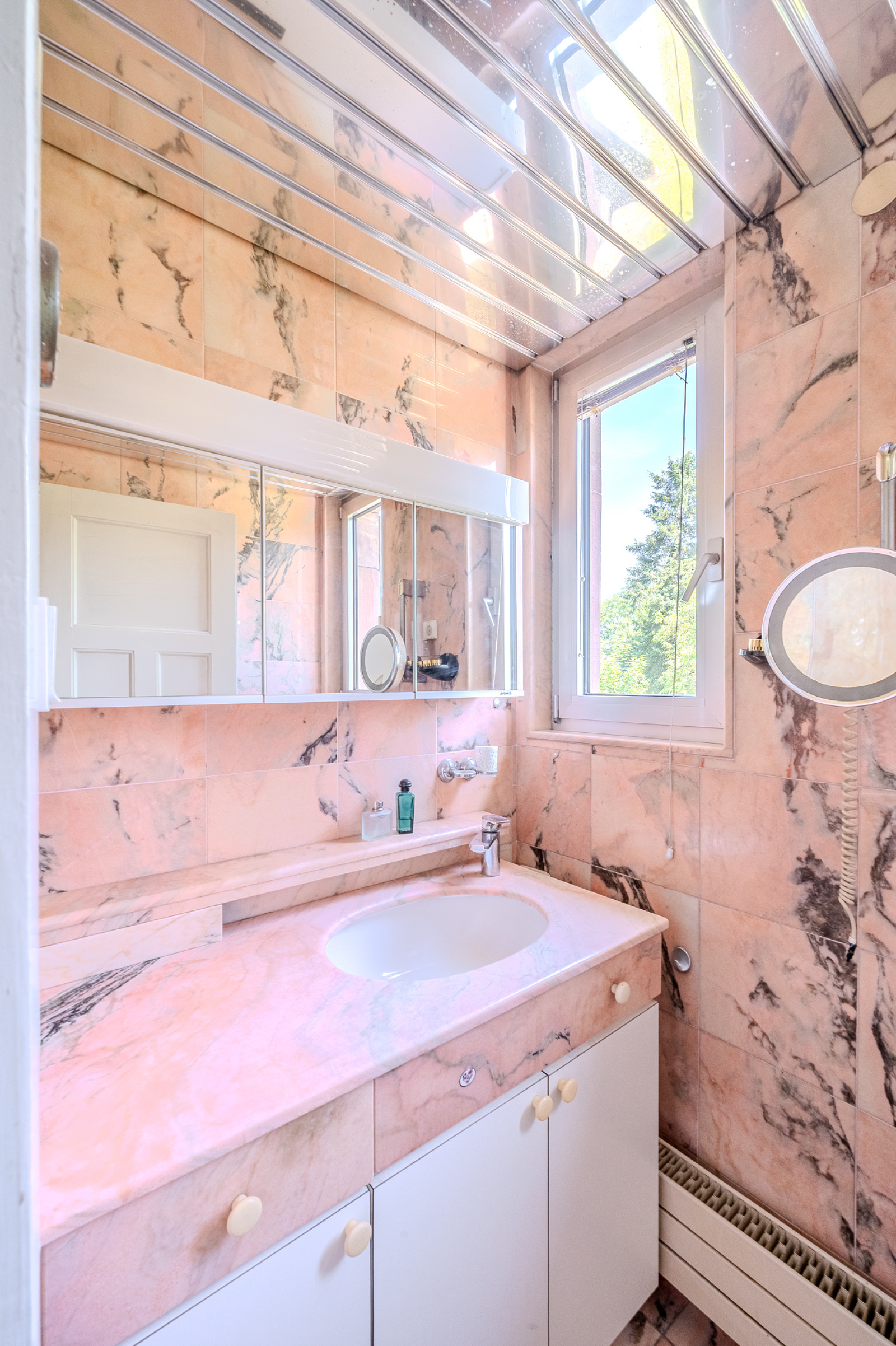 À l'étage : une mezzanine desservant deux chambres à coucher avec balcon, un dressing, une lingerie avec balcon, une salle de bain avec meuble vasque en marbre, un couloir donnant sur une troisième chambre et une salle d'eau avec WC.
